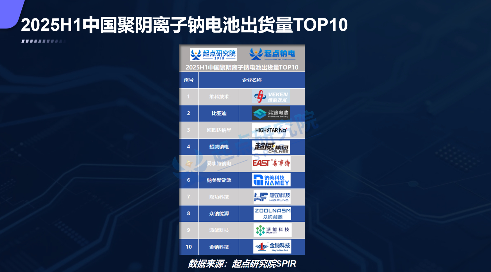 2025 年 8 月 28 日,由起點(diǎn)鈉電主辦的第八屆起點(diǎn)鈉電高峰論壇在深圳市維納斯皇家酒店隆重舉行。本次論壇以“全鏈條技術(shù)產(chǎn)能躍升GWH 級(jí)出貨‘真’元年”為主題,聚焦鈉電全鏈條技術(shù)突破路徑與產(chǎn)業(yè)化落地的關(guān)鍵方向。維科技術(shù)憑借突出的市場(chǎng)表現(xiàn)與技術(shù)實(shí)力,在此次盛會(huì)上一舉斬獲“2025H1中國鈉電池出貨量”與“2025H1中國聚陰離子鈉電池出貨量”兩大榜首并分享核心技術(shù)成果。